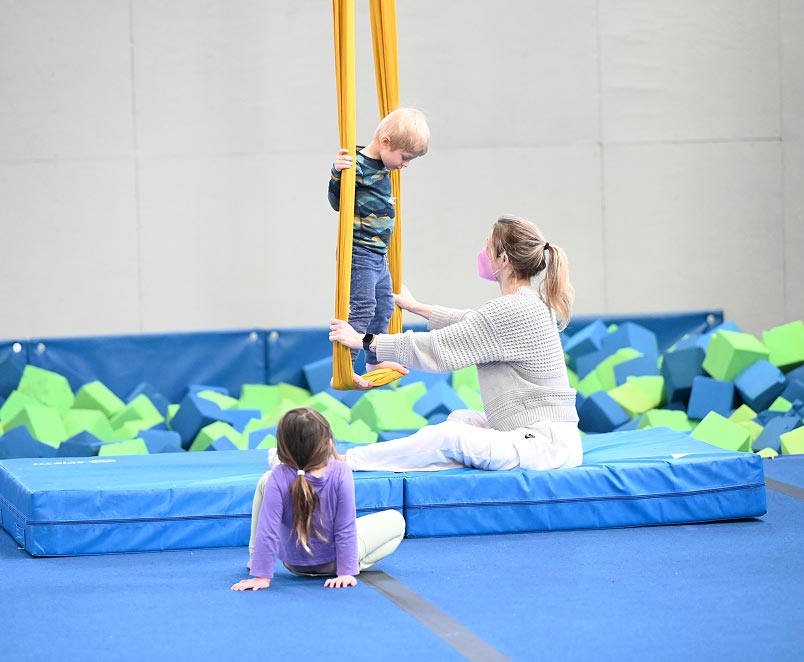 Play under the guidance of expert, caring, fun coaches in our custom-built Trapezium! Featuring 40’ ceilings for high flying fun, an extra deep foam pit for daring souls, in-ground trampoline for adventurous spirits and selected high-flying, balancing, and juggling circus toys for the playful good time every soul craves.